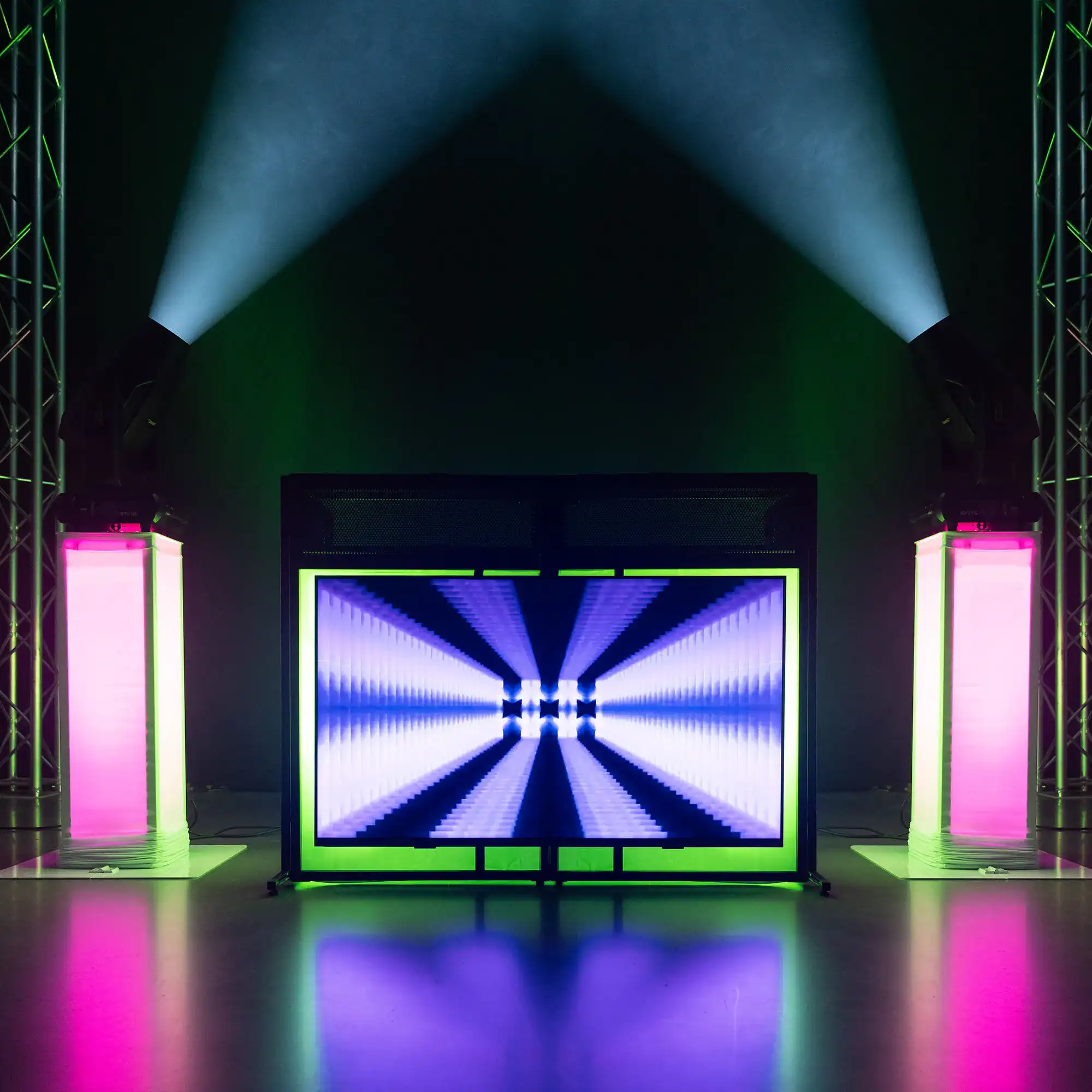 Wat de Vonyx DB6 onderscheidt van standaard DJ booths, is het bijgeleverde 65 inch tv-scherm. Dit scherm is perfect geïntegreerd in de frontplaat van de booth en zorgt voor een enorme visuele impact. Je kunt het scherm gebruiken om je logo, visuals, animaties, songteksten of zelfs livebeelden te tonen. Hierdoor voeg je niet alleen entertainment toe, maar ook branding en sfeer aan je optreden.
